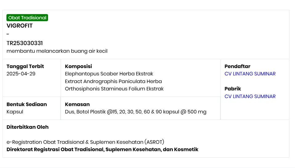 Obat Kencing Nanah Vigrofit Sudah Tersertifikasi